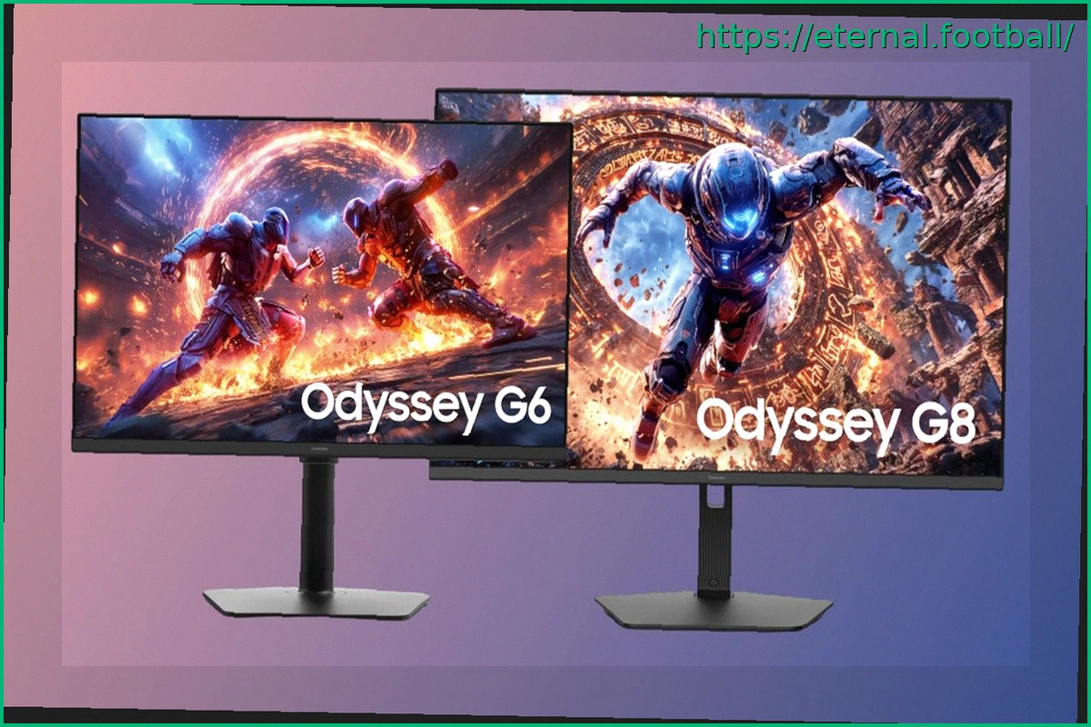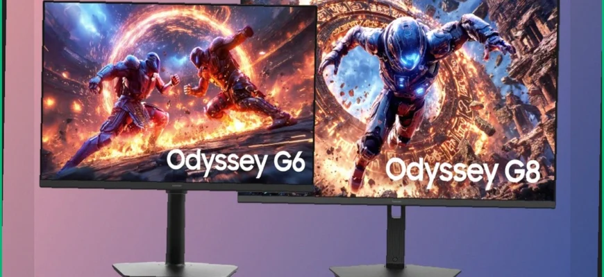 (Image: A visual representation featuring a collage of two Samsung gaming monitors, specifically the Odyssey G6 G60H and Odyssey G8 G80HS, highlighting their sleek design and advanced features.)